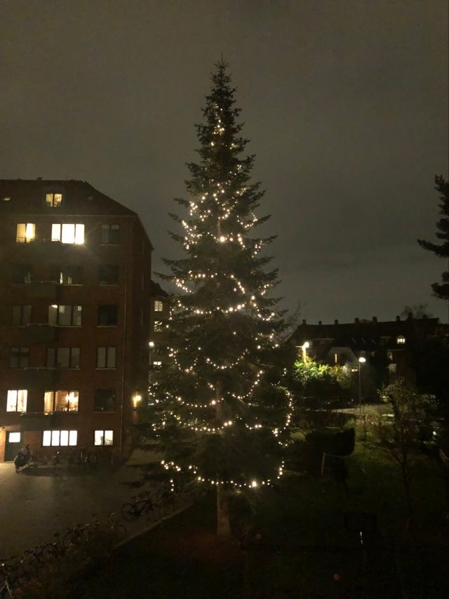 For få dage siden blev Grønnehavegaards juletræ tændt. Vi tror det er det største juletræ på Frederiksberg.